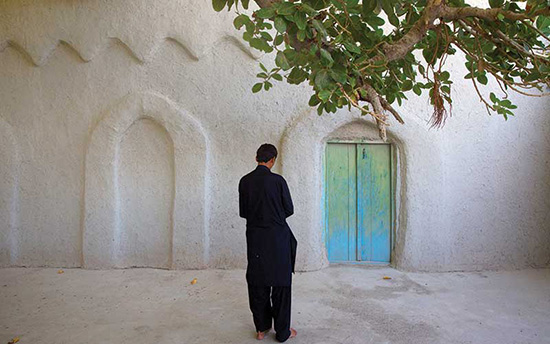 میگوید بیشتر دخترهای روستا بیسوادند. «ما ده نفر بودیم که راهنمایی قبول شدیم اما فقط پدر من اجازه داد درس بخوانم. بعدازظهر که میرسیدم داخل نخلستان، کفشهایم را درمیآوردم و میدویدم. ترس زیاد بود. حالا هم دوست دارم بچههایم درس بخوانند. باید بابایشان را هم راضی کنم. میگوید قرآن بخواند، دختر من سه بار قرآن را ختم کرده.» بیشتر دخترانی که به مدرسهی دینی میروند پوششی روی صورت میگذارند و تنها چشمهای بلوچیشان را میشود دید.