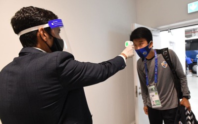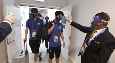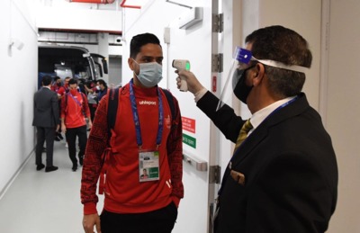 پیش از ورود بازیکنان پرسپولیس از آنها تب سنجی شد که تصاویر آن را در زیر مشاهده کنید.