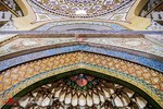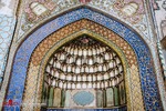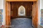 درهای شمال، جنوب و شرق دارای هشتی دالان و دهلیز هستند. بالای درهای شمالی و شرقی تزئینات مقرنس کاری گچی زیبا با دو گوشواره دو طبقه در طرفین با پشت بغلهای کاشی کاری شده وجود دارد. در هشتیهای شمالی، جنوبی و شرقی تاقهای آجری گنبددار با تاقنماهای متعدد با لچکی کاشی کاری شده مشاهده میشوند.