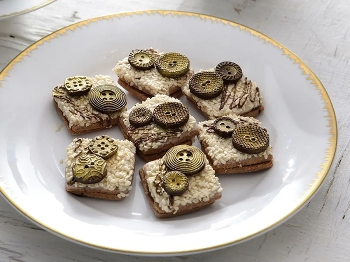 بعد از خنک شدن کوکی ها نصف کوکی ها را در شکلات سفید آب شده بزنید و روی ان کنجد بپاشید.
