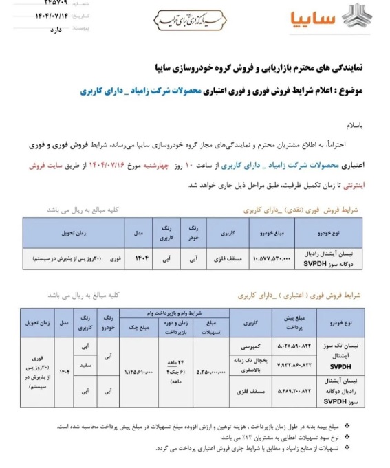به گزارش پارسینه؛ شرایط فروش سایپا را در ادامه بخوانید.