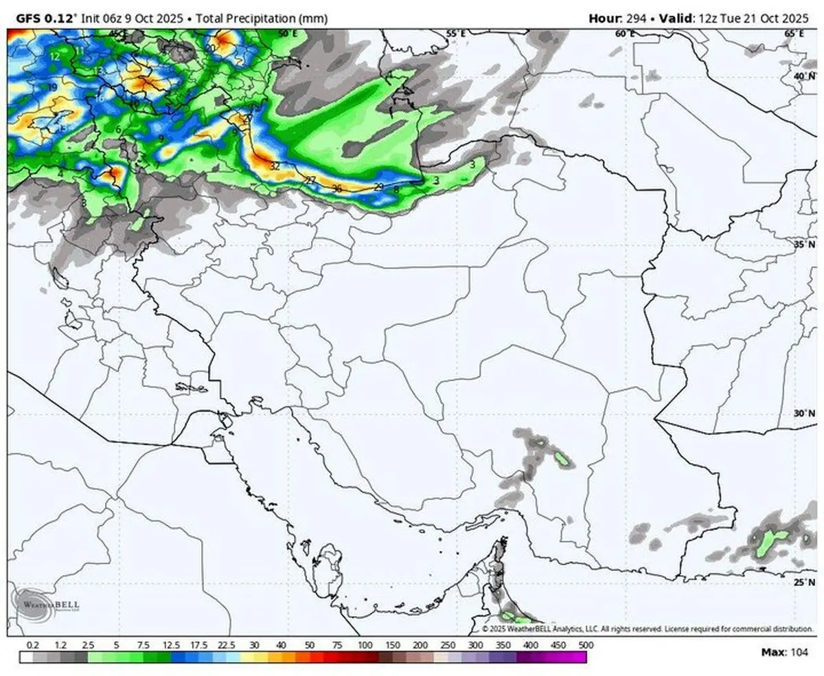 ضیائیان یادآور شد: بر اساس نقشههای پیشبینی، روز جمعه (۲۵ مهر) استانهای گیلان، مازندران، اردبیل، شمال شرق آذربایجان شرقی و ارتفاعات شمال و شرق هرمزگان و روز شنبه (۲۶ مهر) نیز گیلان و غرب مازندران تحت تأثیر این سامانه بارشی قرار میگیرند.