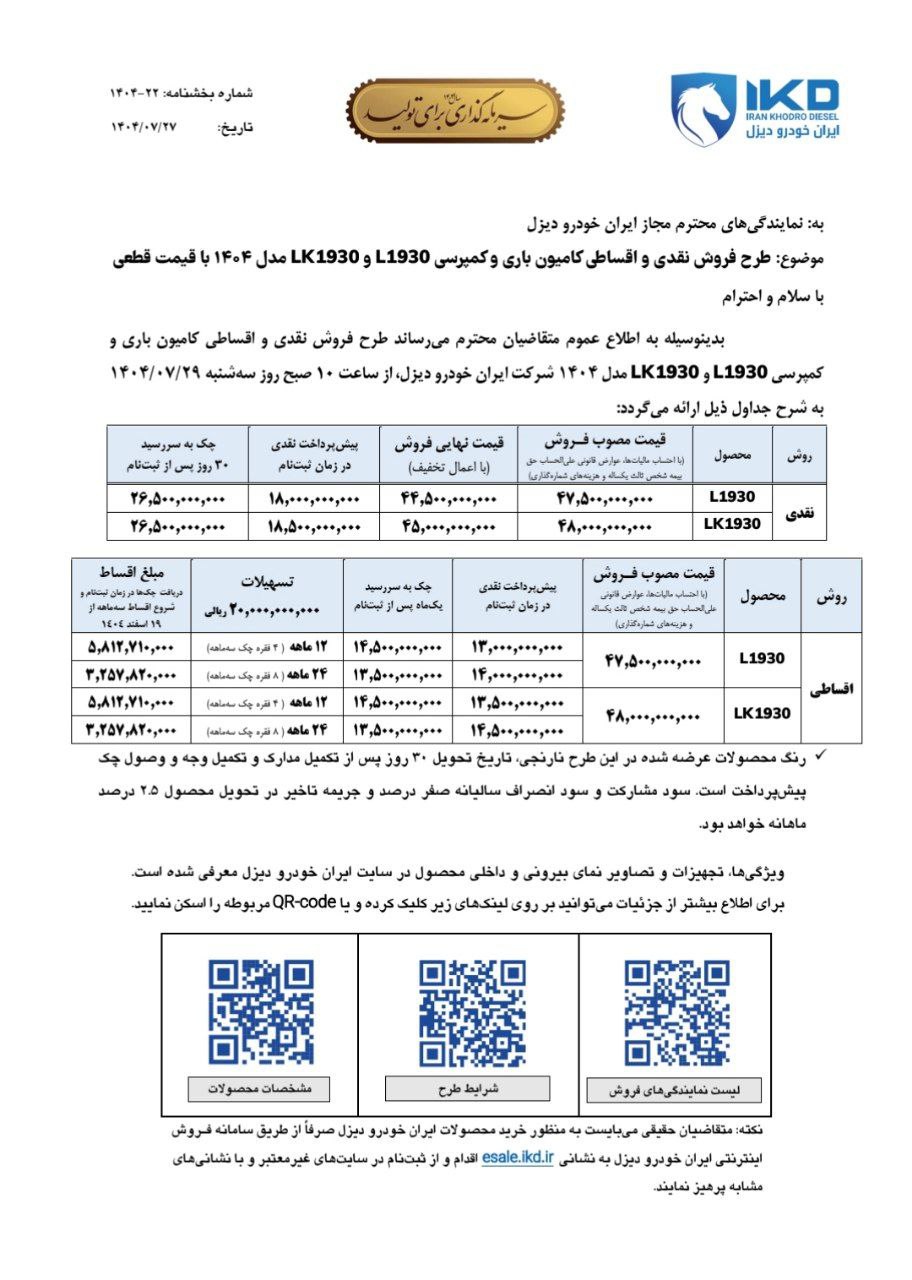 فروش ۲ محصول ایران خودرو دیزل از سهشنبه ۲۹ مهر