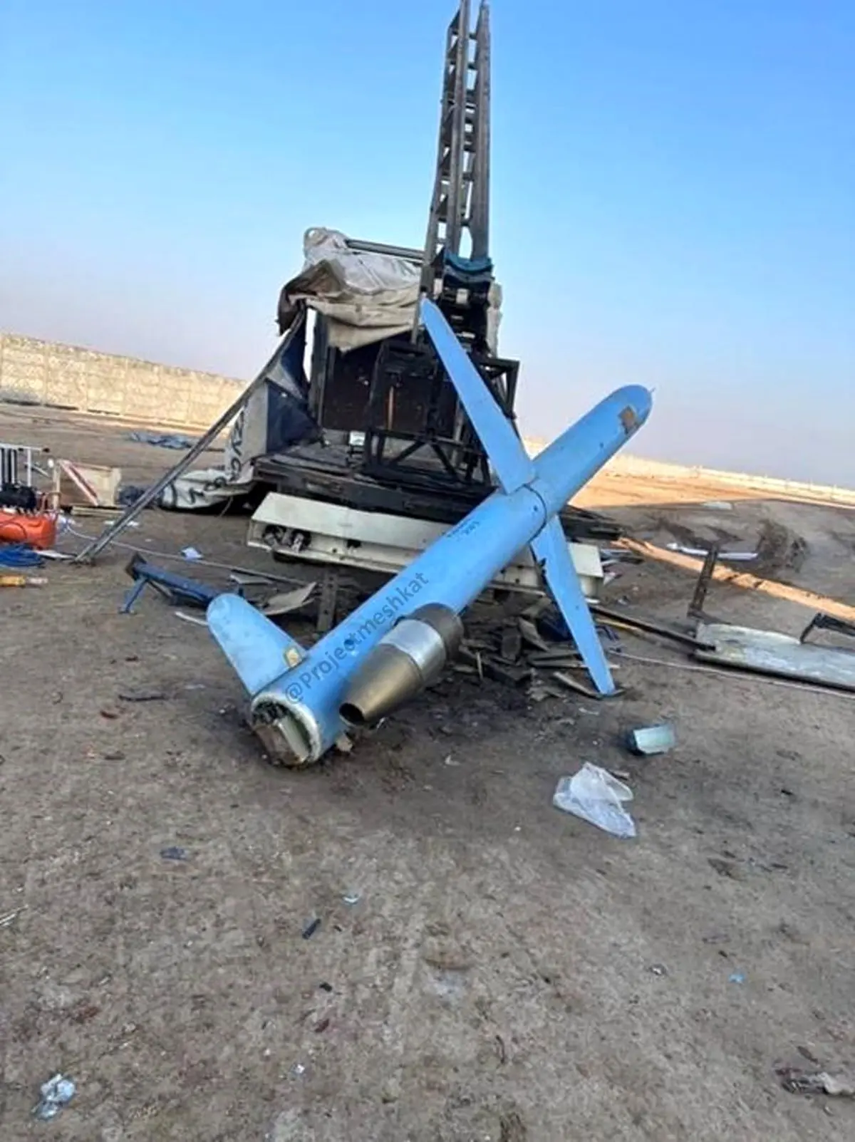 به گزارش سنتکام، این موشک در استان بابل (حله) کشف شده است که به نظر میرسد بر اثر شلیک ناموفق (احتمالا نقص در بوستر)، درکنار پرتابگر خود فیل شده است.