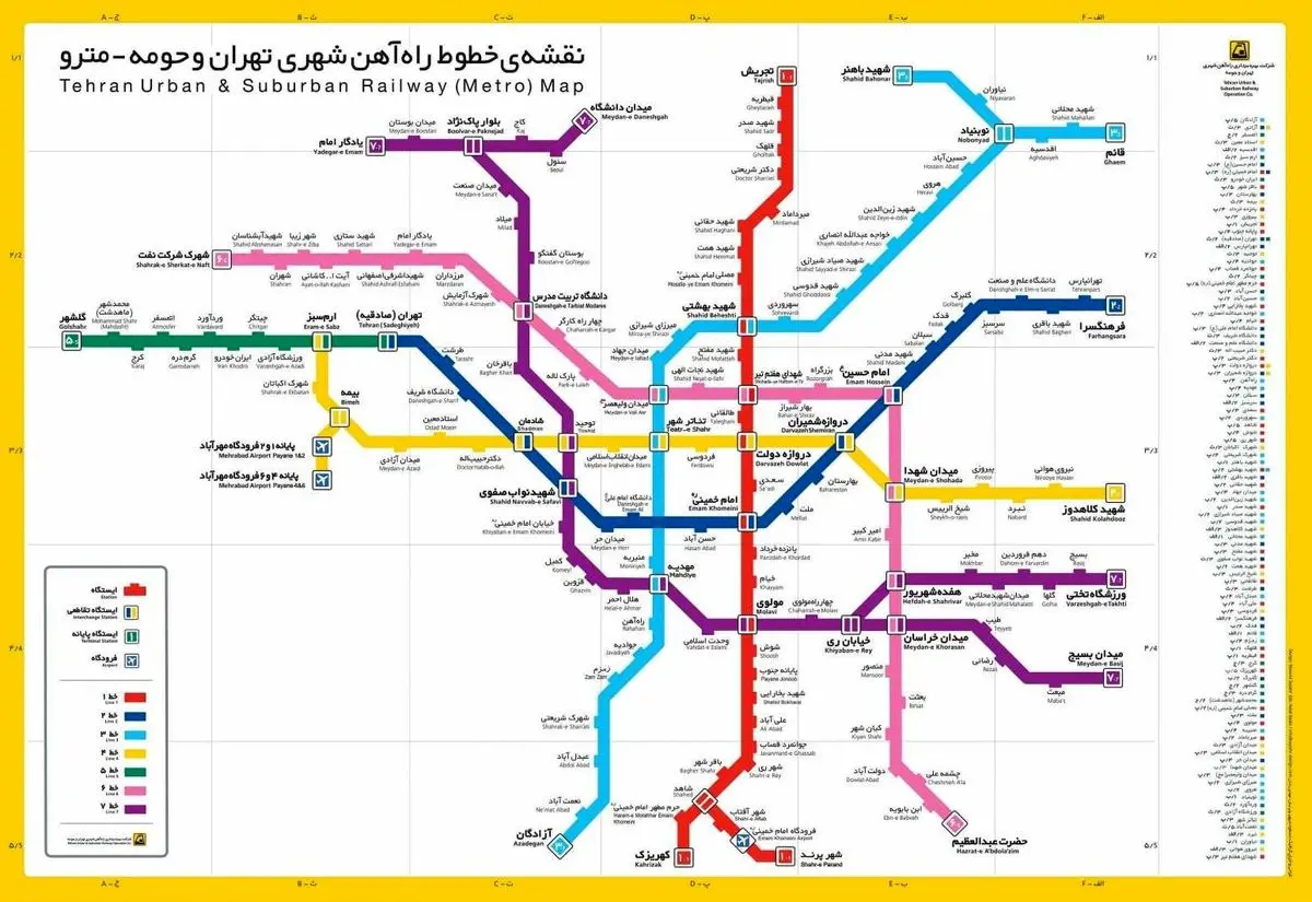 نقشه جدید و کامل خطوط مترو تهران