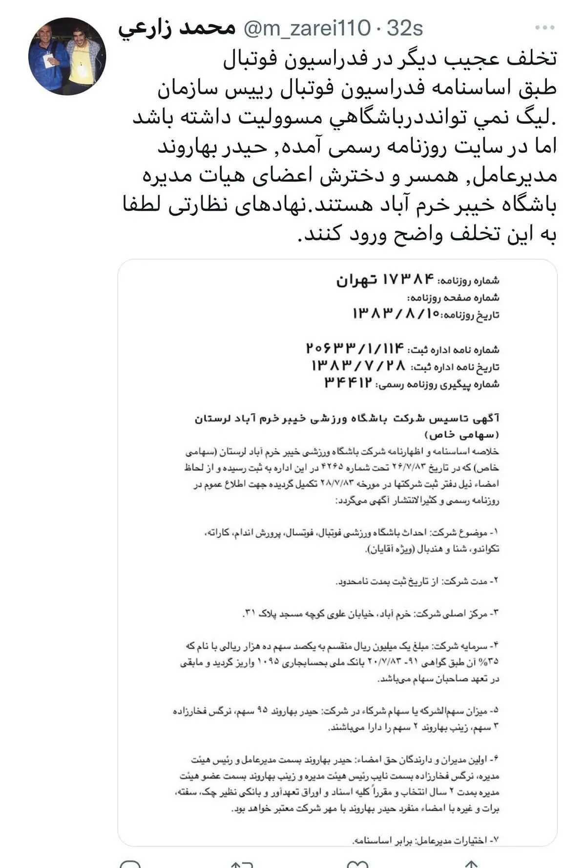 افشاي تخلف حيدر بهاروند توسط خبرنگار همشهري +سند
