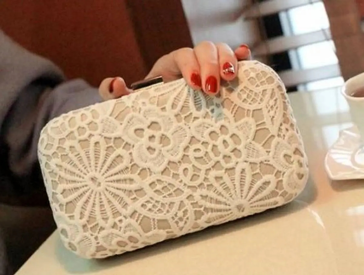 کیف عروس باید تزیین شده و کار شده باشد، چون کیفهای ساده جلوه و جذابیت ندارند، میتوانید از کیفهای کوچک و سفید رنگ که با مروارید، نگین، گیپور، سنگ و... کار شده اند استفاده کنید.