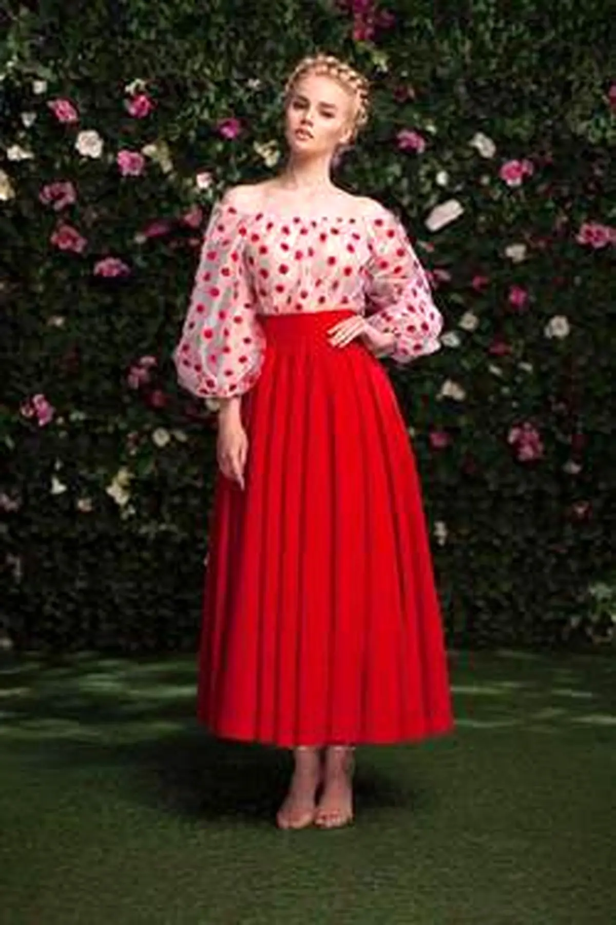 اگر قد بلند هستید، شانس امتحان کردن انواع مدل دامن بلند کمردار را خواهید داشت. این مدل دامنهای گلدار را با پیراهن ساده و تک رنگ ست کنید. همانطور که مشاهده میکنید برای ایجاد هماهنگی، رنگ پیراهن از زمینه پارچه دامن انتخاب شده است.