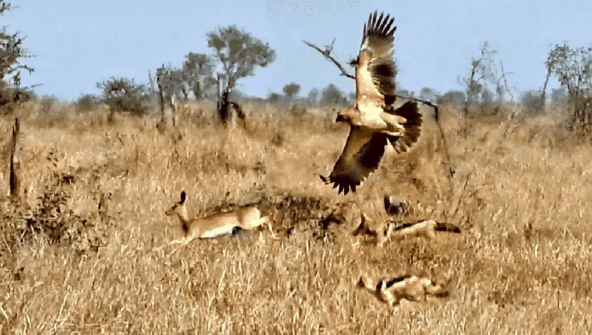 در این ویدئو شاهد یک صحنه باورنکردنی از حمله همزمان عقاب و دو شغال به یک آهو در پارک ملی کروگر در آفریقای جنوبی خواهید بود.