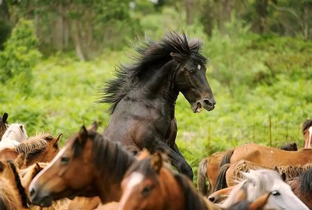 پارسینه: گله اسب های وحشی در جشنواره پشم چینی اسپانیا