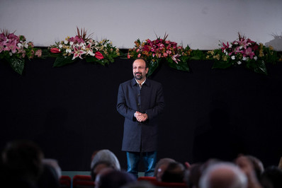 پیش از ورود اصغر فرهادی به سالن سینماتوگراف موزه سینما،تصاویری از فیلمهایش پخش شد؛ کلیپی که مروری بر آثار این کارگردان سرشناس سینمای ایران بود.