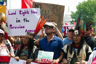 لئوناردو دی کاپریو در تظاهرات ضد ترامپ