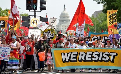 بسیاری از هنرمندان از جمله لئوناردو دی کاپریو در این تظاهرات ضد ترامپ و سیاستهایش شرکت داشتند.