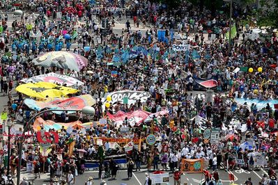 البته دونالد ترامپ امروز در کاخ سفید در واشنگتن نیست و برای برگزاری مراسم یکصدمین روز ریاستجمهوری خود به پنسیلوانیا رفته است.این اعتراضات که تنها در واشنگتن حدود ۱۵ هزار نفر را به خیابانها کشانده است، در انتقاد از رویکرد دولت ترامپ در خصوص موضوع تغییرات آب و هوایی انجام گرفته است.