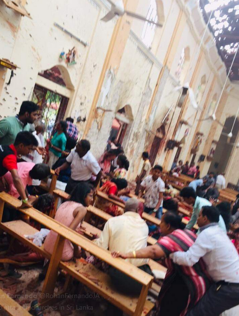 انفجار در کلیسای سنسباستیان تمامی پنجرهها و درها و سقف این کلیسا را از جا کنده و بهدورتر پرتاب کرده است.ساعاتی بعد، به نوشته خبرگزاری فرانسه و به نقل از پلیس سریلانکا، انفجار هفتمی نیز در یک هتل در جنوب کلمبو رخ داد و جان دستکم ۲ نفر دیگر را گرفت.براساس تازهترین گزارشها دولت سریلانکا مقررات منع رفت و آمد اعلام کرد. بر اساس این تصمیم این مقررات فورا به اجرا گذاشته شده و مشخص نیست تا چه زمانی ادامه خواهد داشت. همچنین دسترسی به شبکههای اجتماعی اصلی نیز مسدود شدند.