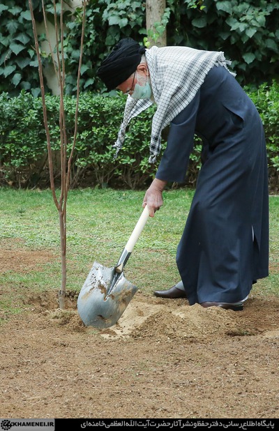 به گزارش پارسینه از پایگاه اطلاع رسانی دفتر مقام معظم رهبری، به مناسبت روز درختکاری، حضرت آیتالله خامنهای پیش از ظهر امروز در محوطه دفتر رهبری، دو نهال کاشتند.