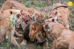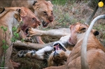 حمله وحشتناک شیرهای ماده به یک شیر نر
