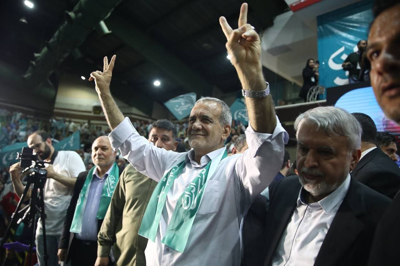 تصاویری از مسعود پزشکیان در همایش حامیانش در تهران/ شعار برای پزشکیان و خاتمی در ورزشگاه شهید شیرودی