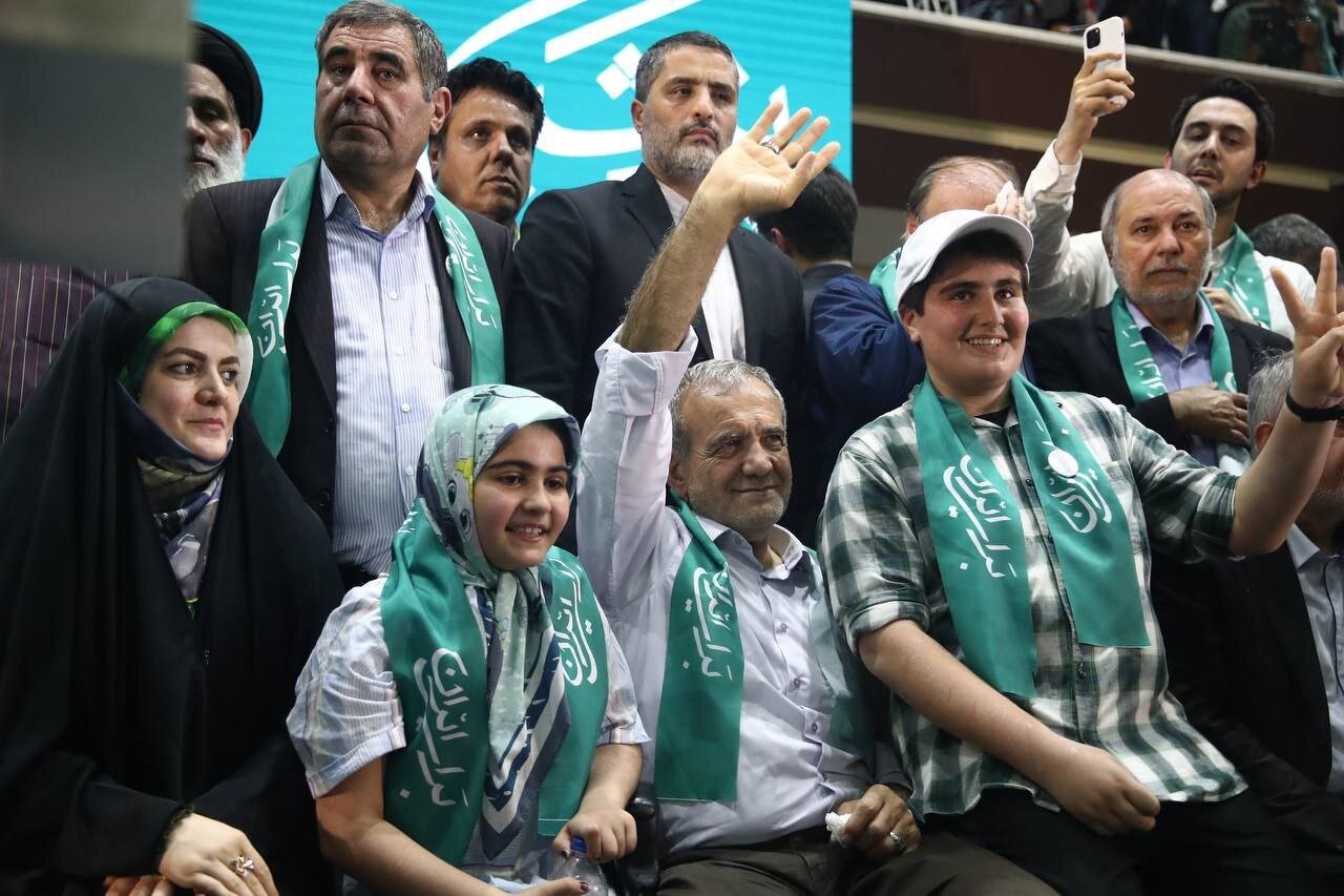 در این همایش مسعود پزشکیان به همراه خانواده اش و چهره های فرهنگی و سیاسی در جمع هواداران خود حاضر شد.